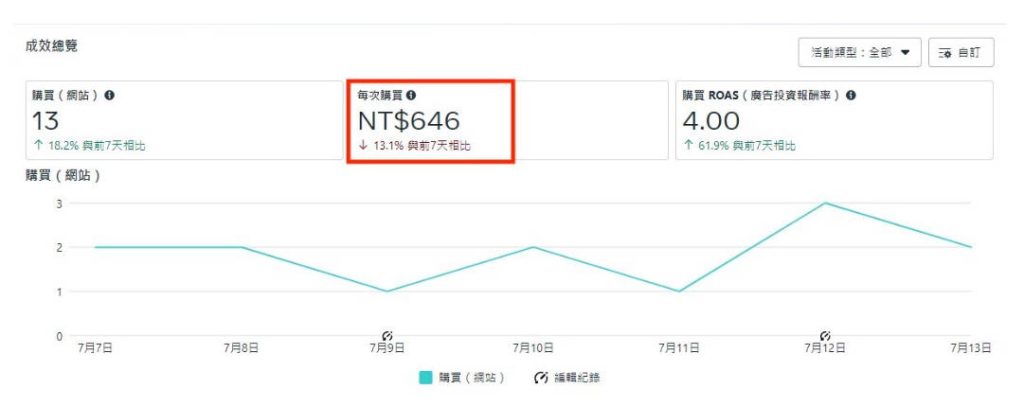 廣告優化師發現過往成效較佳的目標受眾,每次購買成本有逐漸上升的趨勢。
