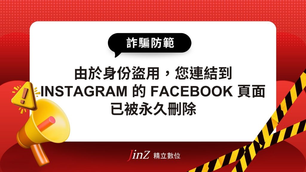 反詐騙專區, 最新消息, 詐騙防範【詐騙防範】由於身分盜用,您連結到 Instagram 的 Facebook 頁面已被永久刪除 作者: 精立數位 / 2025/01/15 您是否收到「由於身分盜用,您連結到 In […]