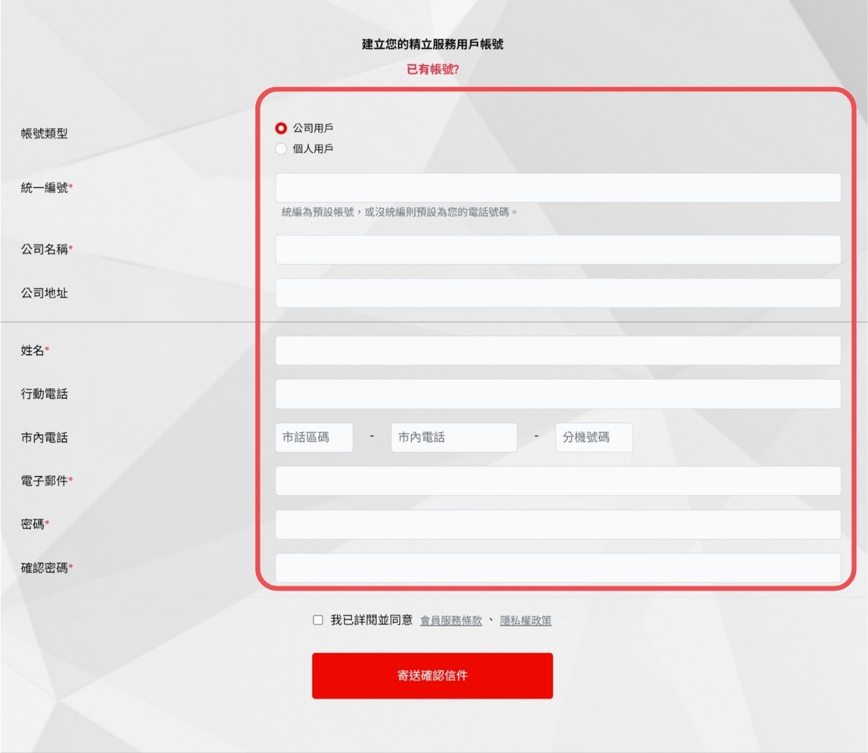 依照畫面指示輸入基本資訊,並完成密碼設定。