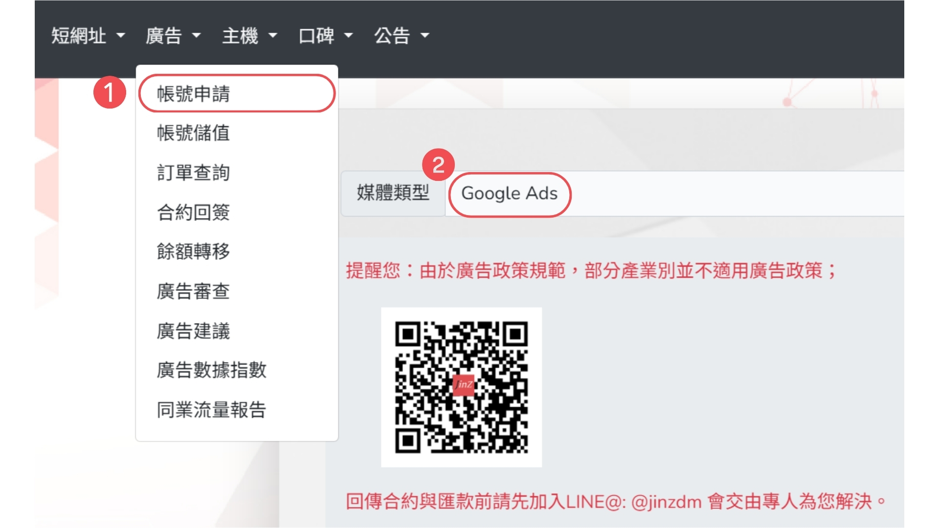 為確保 Google Ads 廣告帳戶權限正確、帳務流程清楚,並加速後續廣告投放與儲值作業,使用者需透過 JS Center 申請 Google Ads 廣告帳號串接。以下為完整申請流程說明。