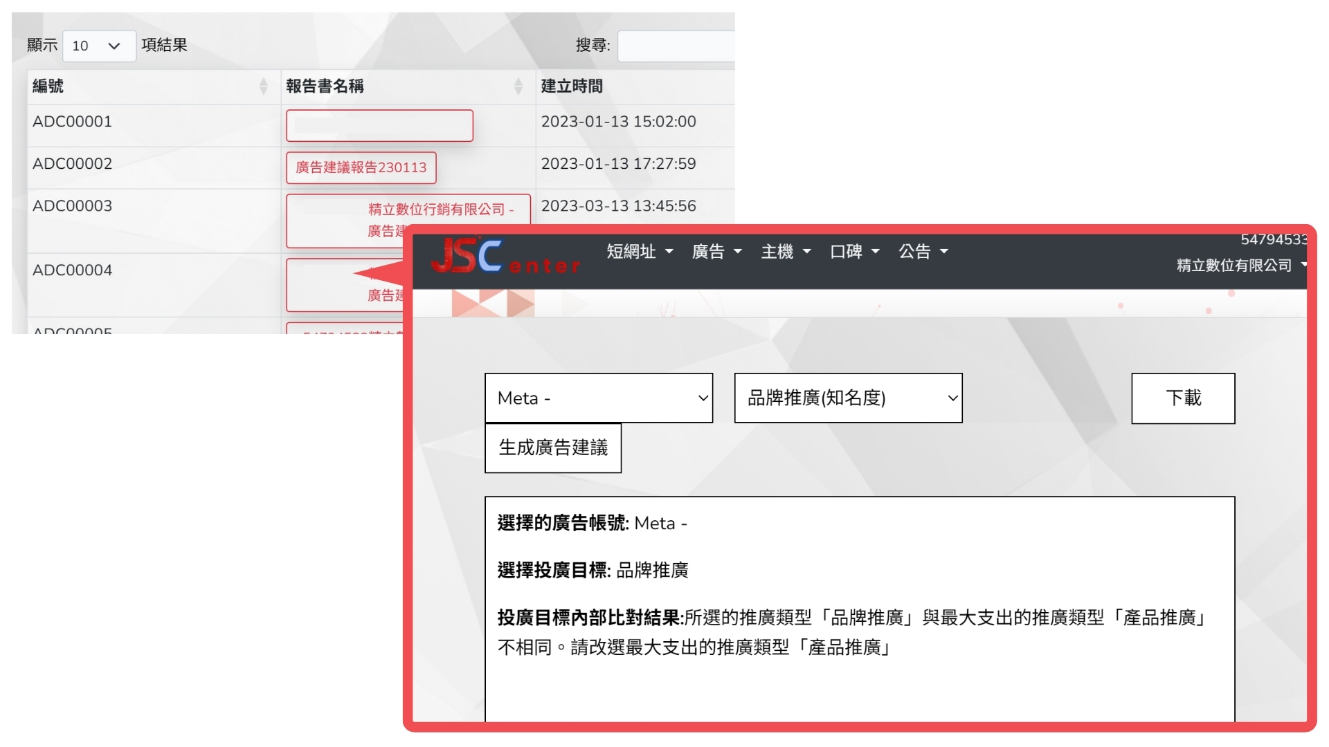 在數位行銷過程中,透過報告生成工具來檢視廣告效果是十分必要的。精立數位提供的廣告報告生成工具,幫助您快速生成與查看廣告相關數據,從而為廣告策略調整提供有力支持。本文將介紹如何使用 JS Center 平台生成廣告報告,並選擇您所需要的報告類型。