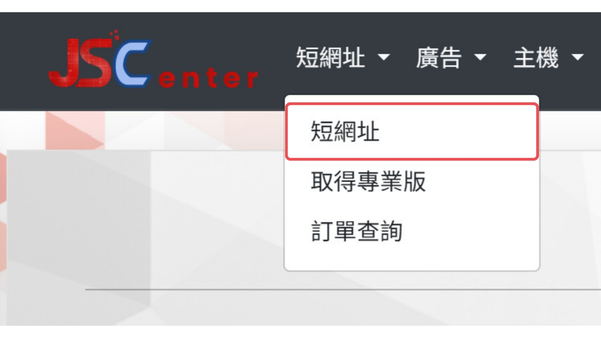 首先,登入 JS Center 平台,並在選單中選擇「短網址」,點擊「短網址」選項後,您將進入短網址管理頁面。