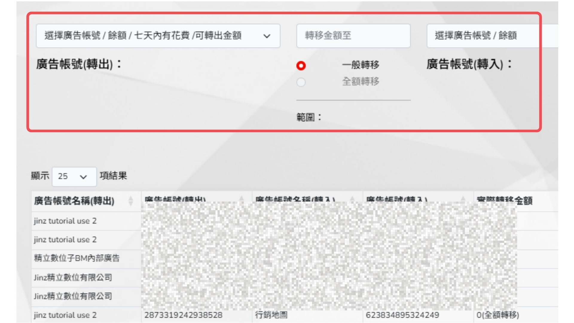 .7 天內無任何花費的廣告帳號申請轉出儲值金額時,可申請 100% 的「全額轉移」,但如果可轉出金額與花費上限相同,則可轉出金額 -1。