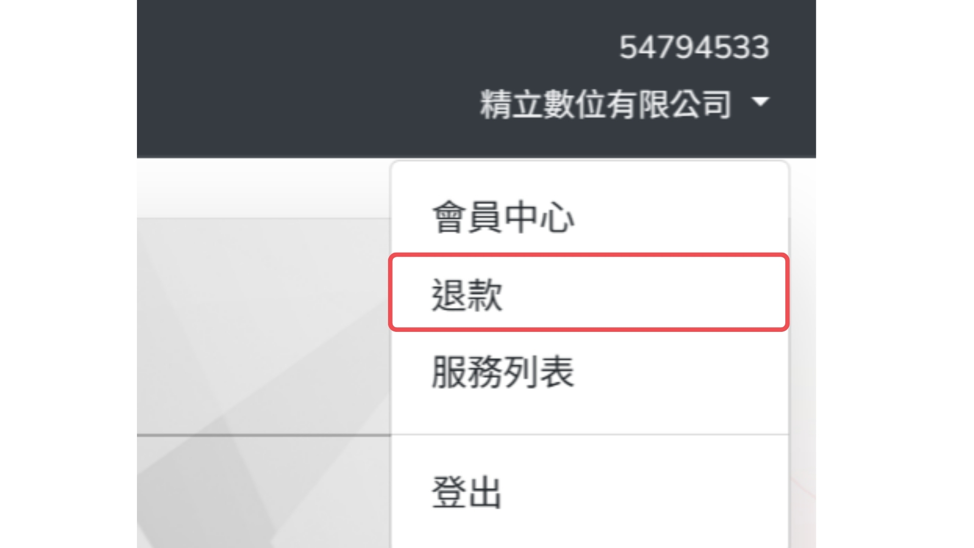 請先登入您的帳戶,並從上方選單中點選「退款」選項。