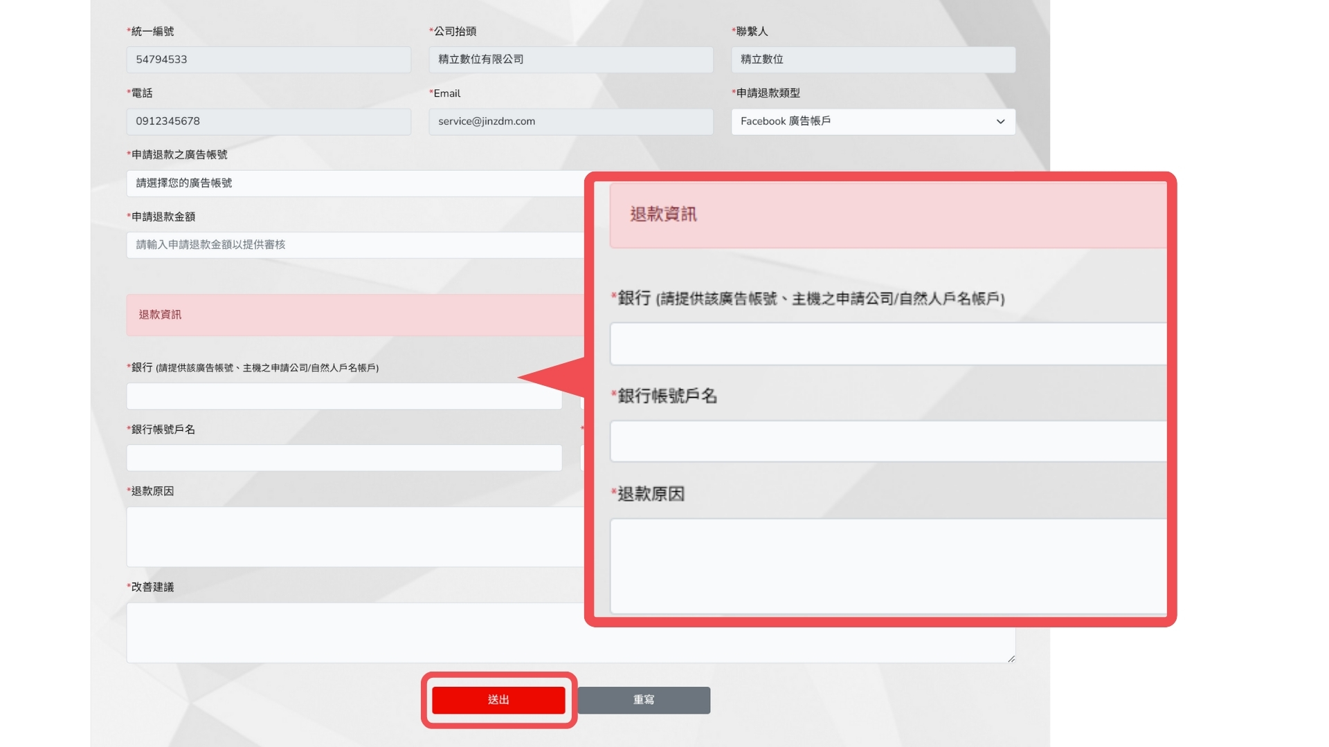 .請確保填寫的退款資料正確無誤,避免因錯誤資料延誤退款處理。