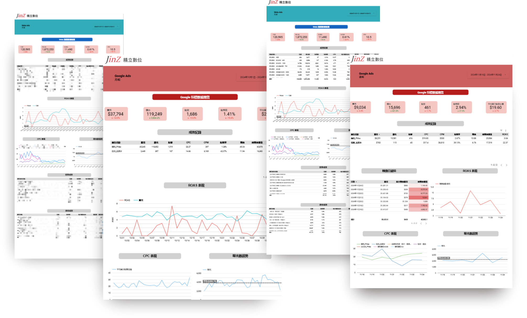 精立數位在廣告執行中,除了開放廣告後台的檢視權限供客戶隨時查看,也會於每週/月提供JSR數據報表,將每筆數據以折線圖的呈現方式,讓客戶一目了然廣告近況與成效,精準掌握每項廣告帶來的實際效益,不用擔心無法掌握廣告成效與預算。