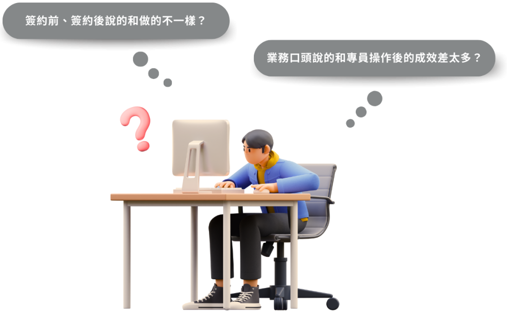 我們累積超過數十億的廣告投放金額、擁有數千家的客戶數與94%以上的客戶續約率,用數據說話,讓您輕鬆享有更好的數位廣告成效。