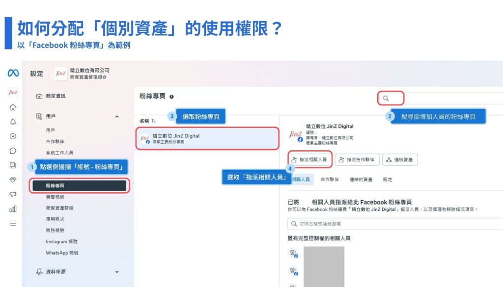在使用 Meta 企業管理平台的任何資產之前,第一步一定是先新增「相關人員」。