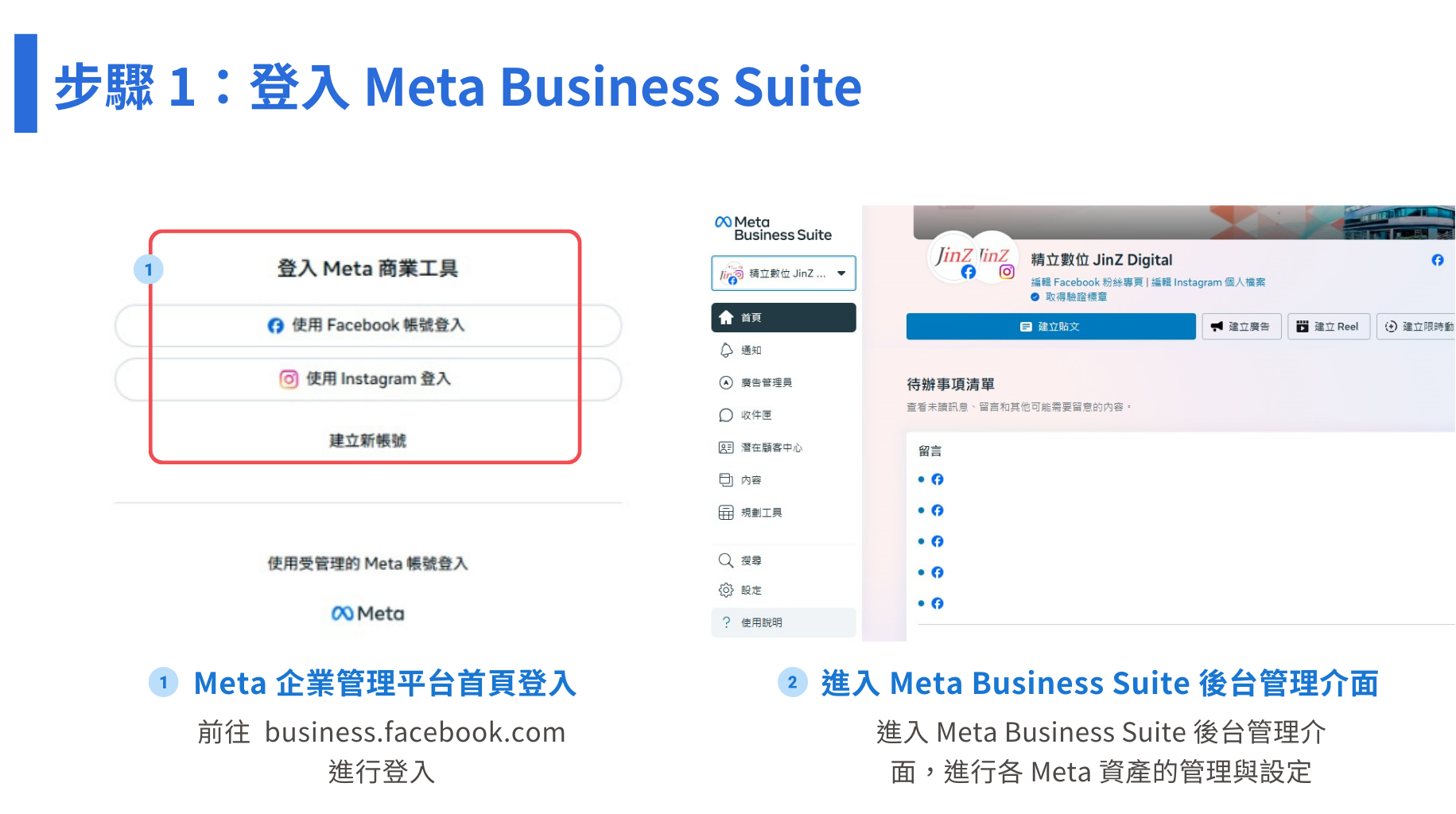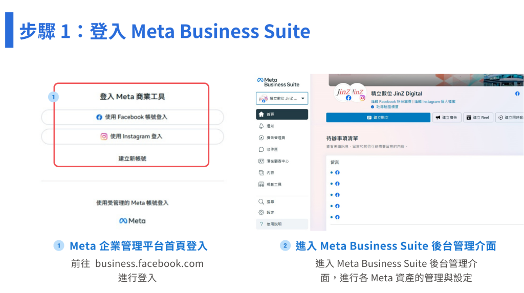 ➊ 前往官方頁面登入 Meta Business Suite