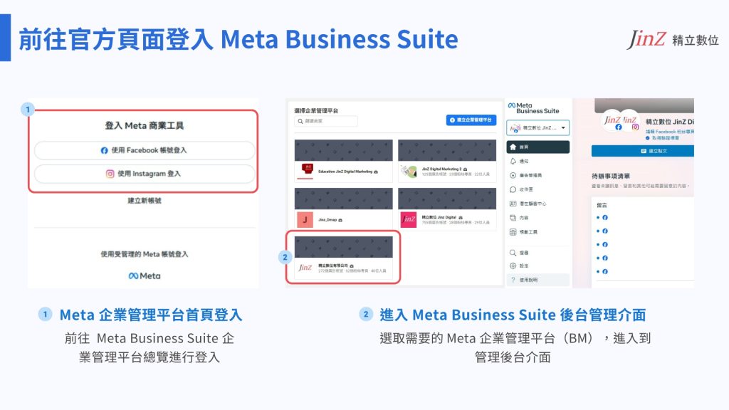 步驟 1:登入 Facebook 並進入 Meta Business Suite(BM)