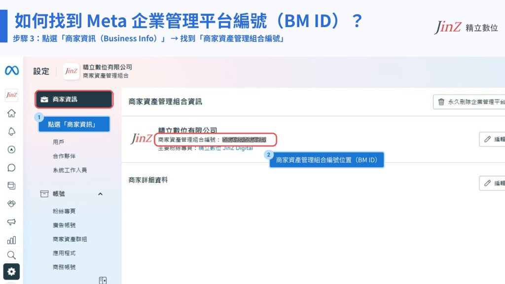 二、找到 Meta 企業管理平台編號(Business ID / BM ID)
