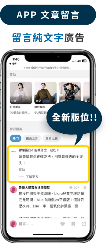 使用者可於文章中留言 / 收藏 / 分享,進而提高討論聲量。