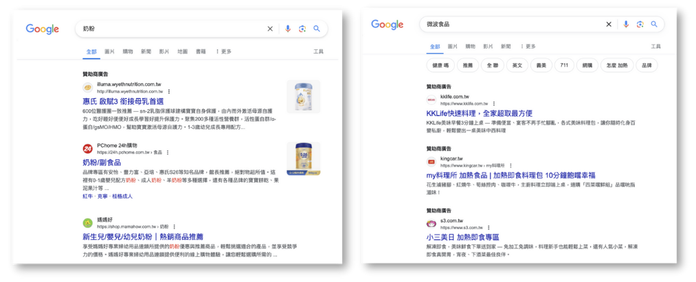 Google 以搜尋廣告承接「品牌+產品字」相關搜尋字,精準觸及喜愛美食、送禮需求的消費者。