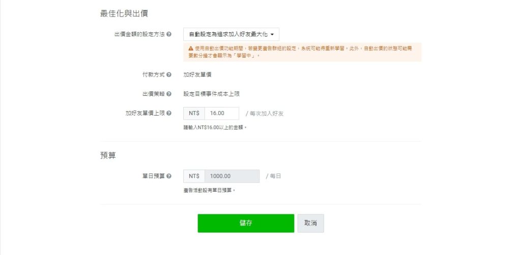 以下用加好友廣告為例進行費用評估: