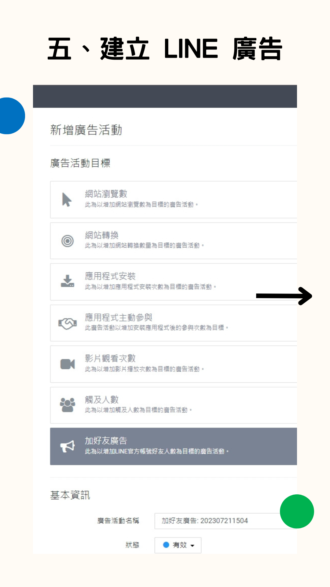 我們會建議您優先選擇「加好友廣告」的廣告活動目標,